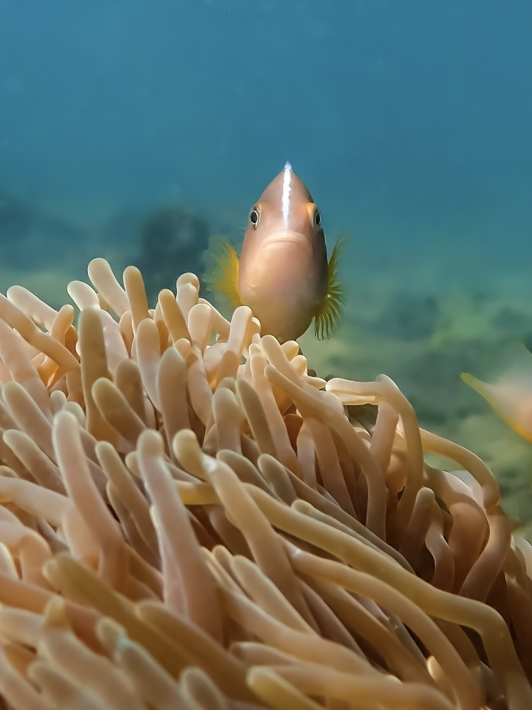 “เห้ย! นี่มันปะการังนี่นา” ผมร้องตะโกนบอก พร้อมกับอาการตื่นเต้นอย่างมาก เพราะวันนั้นนำ้ใสที่สุด ใสจนมองเห็นว่ามันมีปะการังแข็ง ดอกไม้ทะเล ขึ้นอยู่เต็มไปหมด ในระดับน้ำที่ตื้นมาก และที่สำคัญคือ “ปลาการ์ตูน หรือปลานีโม่” เยอะมากครับ ดูจนอิ่มหนำสำราญมาก